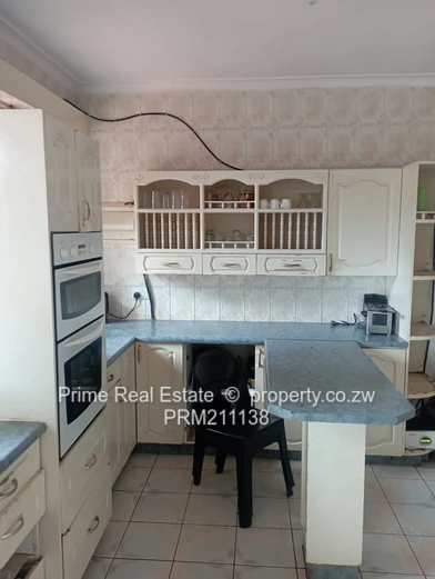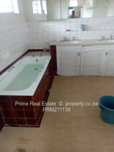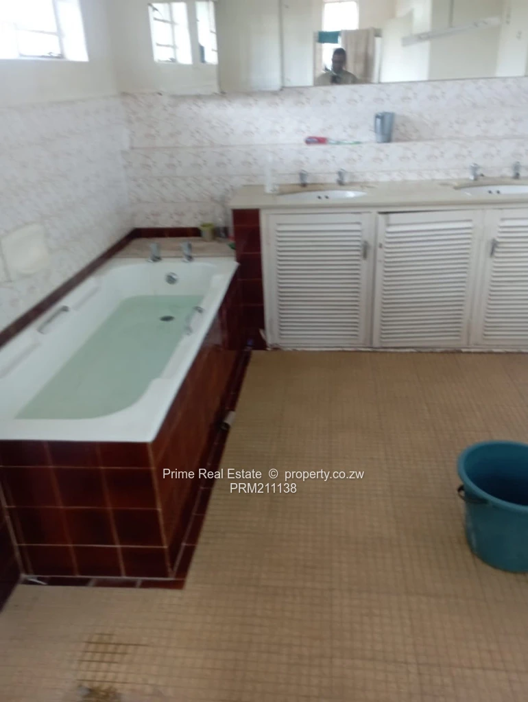 5bedroomed executive double storey, mes, bic, 2lounges, dining, kitchen, bath, Sep toilet, cottage, 4roomed staff quarters, borehole, close to the UZ, excellent neighborhood.